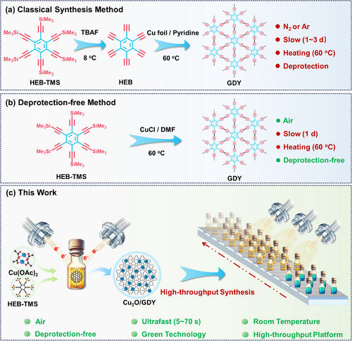 [373] Junhua Kuang, Jia Yu*, Qiaoyu Zhang, Shihang Zhu, Ruoxuan Wang, Junchi Ma, Jinlong Wan, Han Han, Zhifeng He, Nuowen Ma, Yuting Zhang, Liuxuan Cao, Shisheng Zheng, Binju Wang, Li Peng*, Shuliang Yang*, Jian-Feng Li*, Weiguo Song, Yuliang Li. Graphdiyne Production in a Flash: High-Yield Direct Synthesis by Electron Beam Irradiation. Adv. Mater., 2025, n/a, 2506979.[Link]
